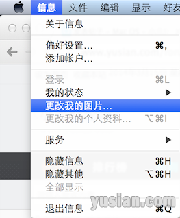 1、MacOS自带的软件--信息(手机上称iMessage),中与对方聊天时,自己的头像可以随意更换,具体设置在左上角“信息”--“更改我的图片”中进行: