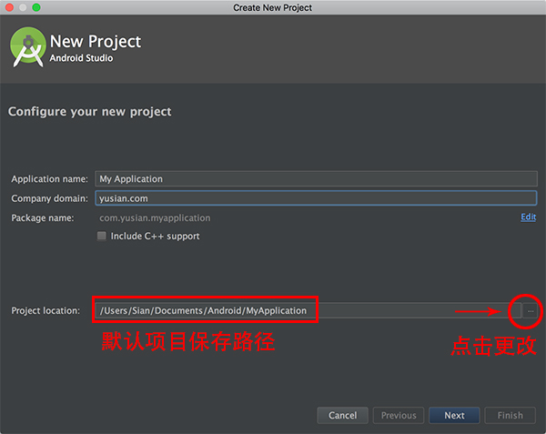 1、在新建工程时,MAC下默认目录为/Users/xxxxx/AndroidStudioProjects,如果要修改默认路径怎么办呢?